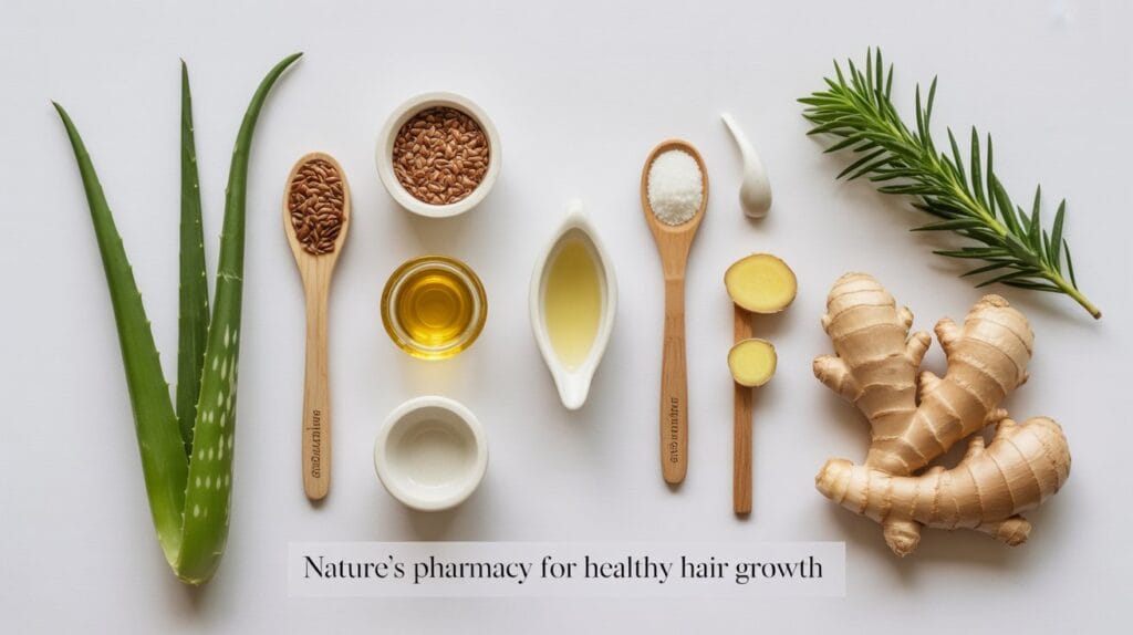 - Thyme : Increases blood flow to the scalp, promoting growth.